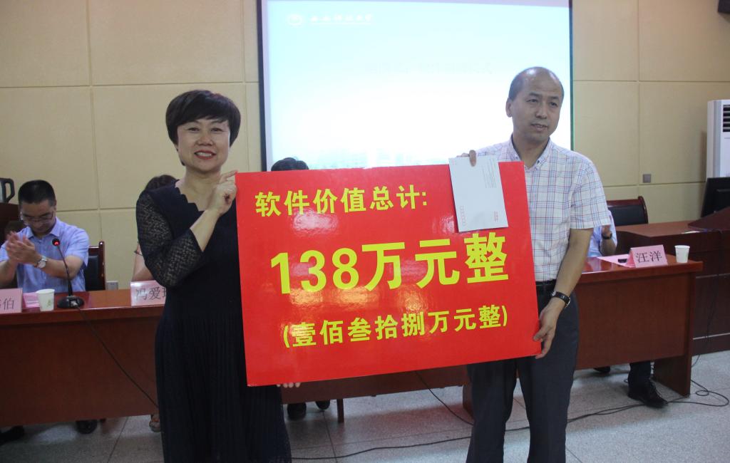 经理李占利代表公司向与会的企业界代表表示热烈的欢迎和诚挚的问候,并介绍了公司、公司的基本情况。他指出,此次签约将为计算机公司深化创新创业教育改革,探索“产教融合、校企合作”应用型人才培养路径,构建多样化的合作模式提供助力。企业代表刘玉波希望本次与best365英国体育在线计算机公司的战略合作协议的签署将会推动双方在实践教学、应用型人才培养、产学研相结合等方面的合作进入新的阶段,协调创新,取得更多合作成果,在合作中实现共赢。专业实验室主任温乃宁代表公司接受北京学佳澳软件科技有限公司捐赠价值138万的教学实训软件。