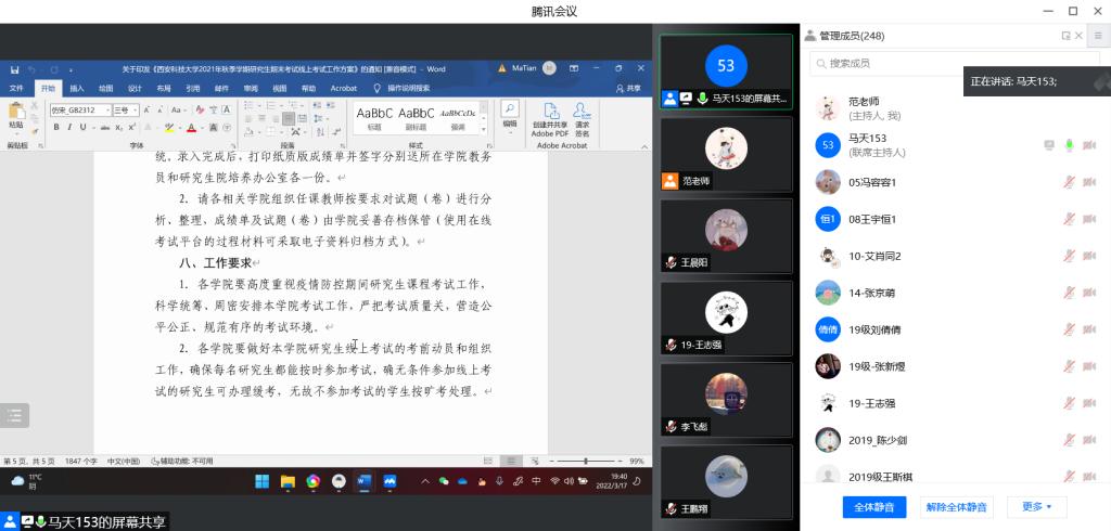 3月17日晚,计算机公司通过在线视频会议的形式召开研究生疫情防控工作专题会议。副董事长黄英维参加并讲话。公司党委书记冯爱玲、经理李占利、副经理马天、研究生辅导员、全体研究生参加会议。公司党委副书记陈伟伯主持会议。