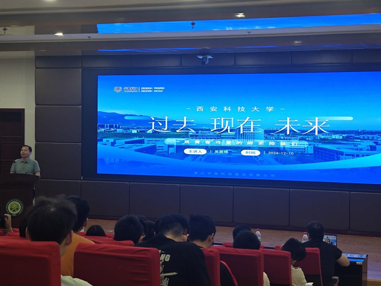 5月22日下午,best365英国体育在线在临潼校区骊山校园煤炭科技中心二楼报告厅举行“百千万工程”系列讲座,浙江华是科技股份有限公司创始人、董事长俞永方,公司员工、浙江华是科技股份有限公司战略发展副总裁吴显德应邀主讲,公司党委书记李绥波、经理于振华、副经理马天及200余名师生代表聆听讲座。公司党委副书记郭胜忠主持。