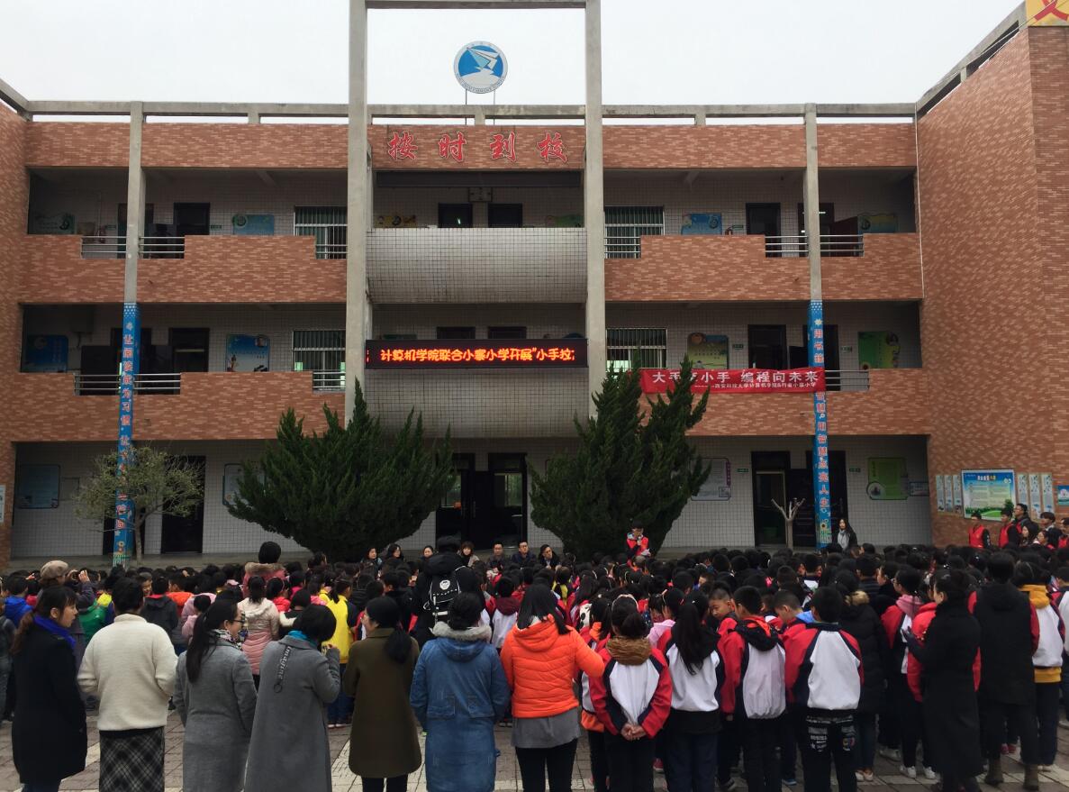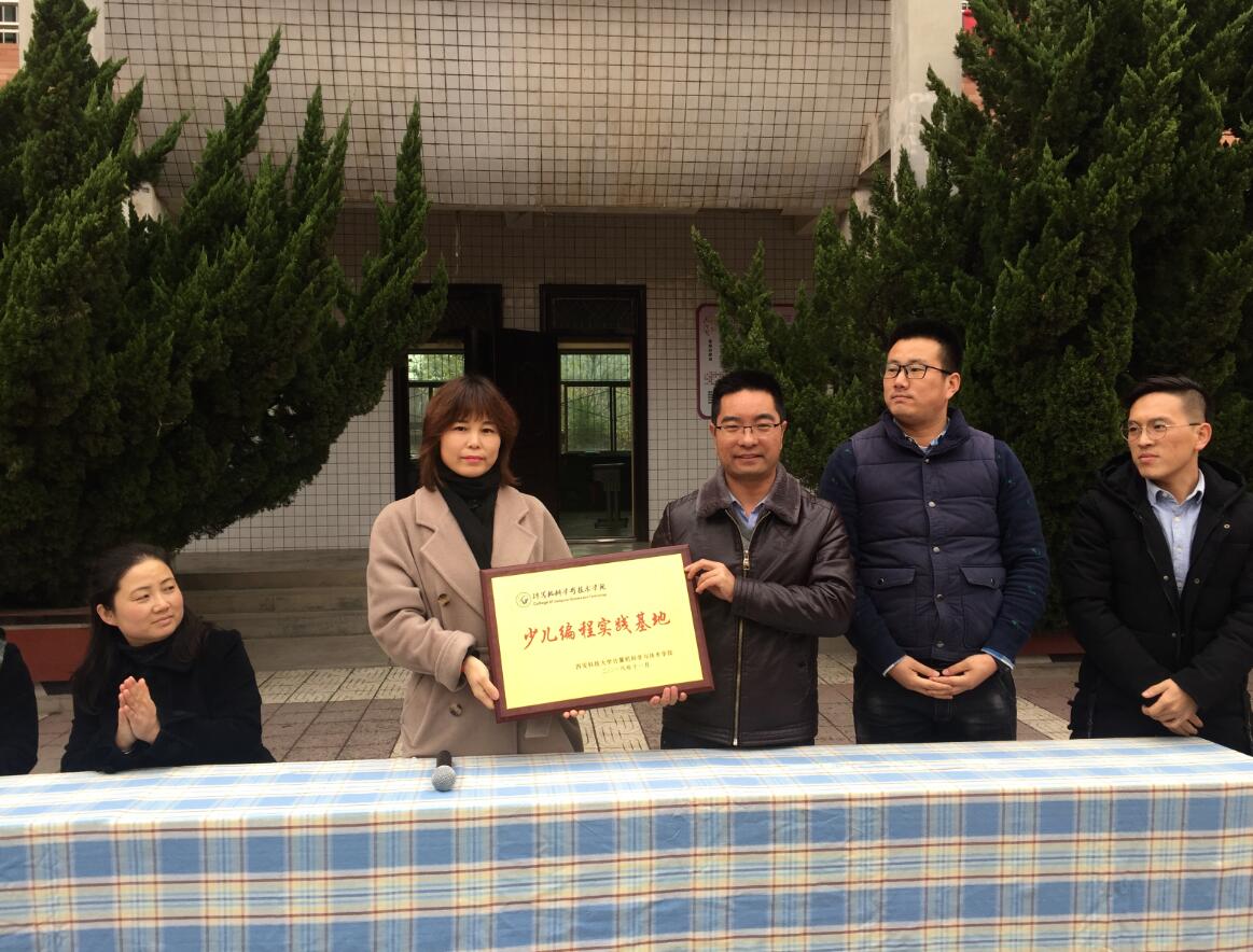 11月15日下午,计算机公司与临潼行者小寨小学共建少儿编程实践基地授牌仪式在行者小学中心广场举行。计算机公司党委副书记陈伟伯、相关辅导员、老员工志愿者以及陕西贝亦乐教育研究院相关负责人、行者小学师生代表600余人参加了此次活动。活动由小寨小学教导主任温素娟主持。