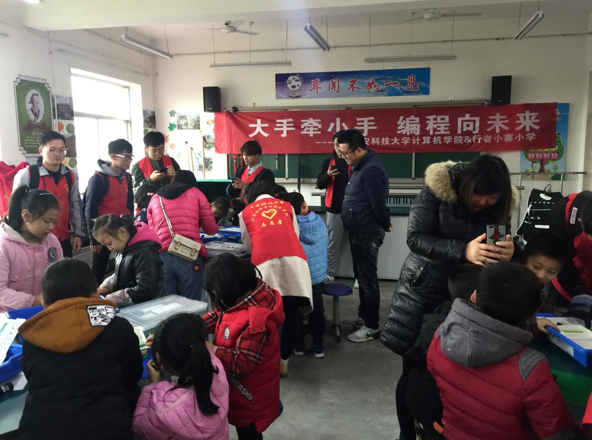 最后,老员工志愿者带领第一期少儿编程班学员在科技实验室进行了体验活动,孩子们通过通过组装、搭建、运行机器人,进一步激发了学习编程的兴趣。从下周开始,老员工志愿者将在小寨小学开展每两周一次的少儿编程教育活动课。